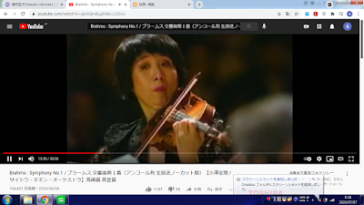 手許のアルバムはJSバッハの無伴奏Vnソナタ他数枚ありましたので、追加して、Youtubeで検索した結果、下のアルバムが追加して、聞くことができます。珍しい、水戸管での女性コンマスで、小澤征爾指揮の有名な「ブラームス 交響曲第1番」の演奏に参加されています。今日はこの曲を中心に抜粋盤ですが、「The last video of Masuko Ushioda」,「Ysaye:Sonata for violin solo」と「Bruch: Violin Concerto No. 1」の4点を選んで聴いてみることにします。ご主人と演奏した、ブラームスの二重協奏曲は見つかりませんでした。